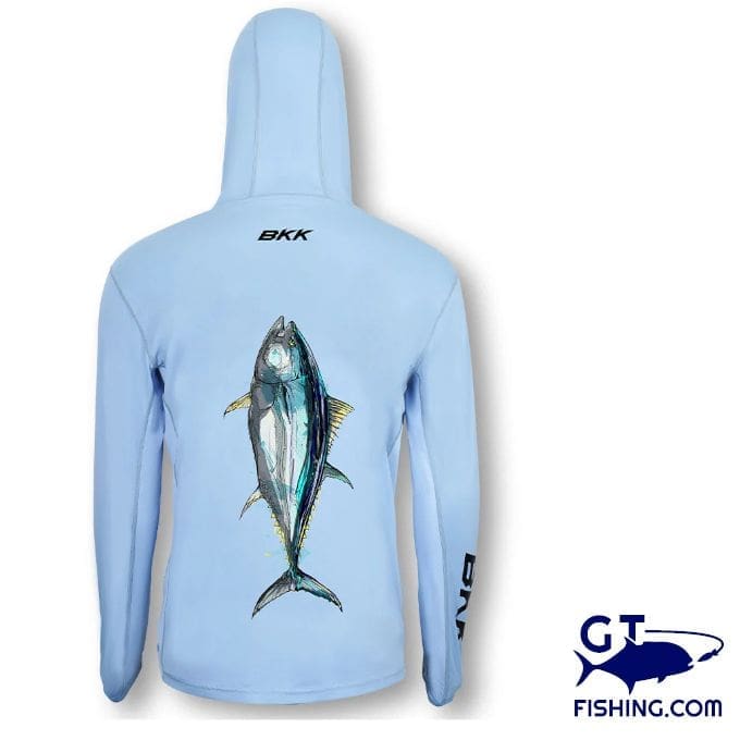Das BKK Performance Shirt Tuna LS Shirt gibt es jetzt in einer Kapuzenversion für zusätzliche Abdeckung zum Schutz Ihres Kopfes und Hals vor intensiver Sonneneinstrahlung. Der Stoff bietet einen UV-Schutz (UPF 50+) und trocknet sehr schnell. Die Daumenlöcher halten die Ärmel an Ort und Stelle und die Mesh-Einsätze auf beiden Seiten des Körpers sorgen für hohe Seiten- und Bewegungsfreiheit. Ein Muss für jeden Tuna Angler!