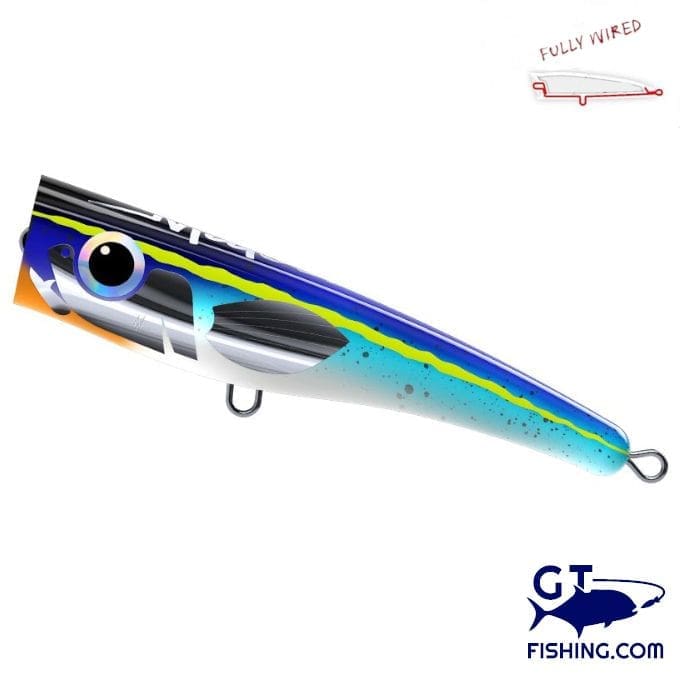 Der Malosi Tyrant 180 ist ein Popper mit großer Wirkung im Verhältnis zu seiner Größe und seinem Gewicht. Mit einem asymmetrischen Design und einem niedrigen Schwerpunkt können Sie den ganzen Tag mit minimaler Ermüdung fischen. Der Tyrant nimmt dank seiner größeren Masse im vorderen Bereich und seines Auftriebs auch große Haken auf. Im Gegensatz zu anderen Poppern, die im Flug taumeln, schneidet der Tyrant durch die Luft und ermöglicht so superlange Würfe in die heiße Zone. Ein langer, schwerer Popper erzeugt ein tiefes, dumpfes Geräusch und explosive Verwirbelungen. Kurze, scharfe Rucke erzeugen eine explosive Aktion mit verführerischem Oberflächenspritzen und Wasserspray. Der Tyrant war in dieser Hinsicht schon viele Male erfolgreich und hat alle üblichen Verdächtigen angelockt: Giant Trevally, Kingfish, Thunfisch & Cubera. Aus diesem Grund ist der Tyrant ein Muss in jedem Topwater-Arsenal.